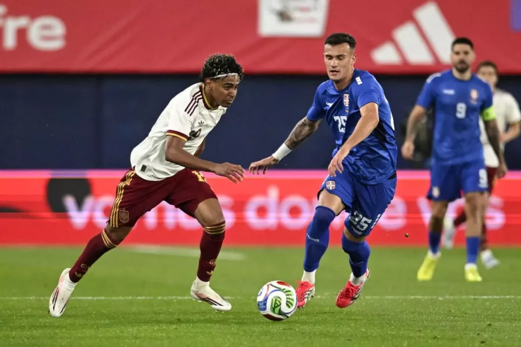 España disputó un amistoso frente a Serbia en el que ganó con contundencia por un 3-0. Los tres goles tuvieron participación culé, Fermín y Pau Cubarsí firmaron una asistencia cada uno a los dos goles de Mikel Oyarzabal y Ferrán Torres hizo un taconazo espectacular para que Víctor Muñoz marcase su primer gol en el día de su debut. Lamine, Pedri, Fermín y Pau Cubarsí salieron desde el inicio y cuajaron un buen partido, mientras que Dani Olmo y Ferrán Torres partieron desde el banquillo pero disponieron de minutos en la segunda parte.