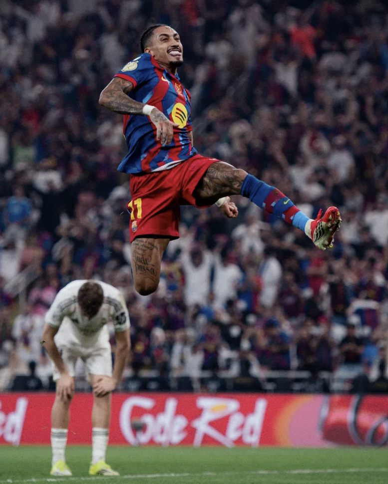 Raphinha celebra un gol ante el Real Madrid | Fuente: FC Barcelona