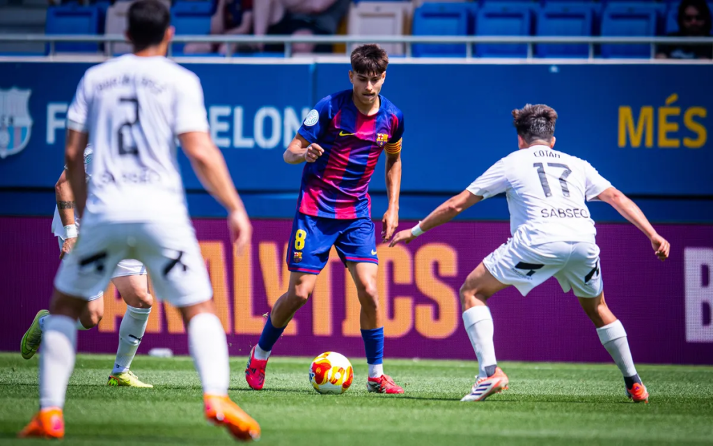 Con los goles de Víctor Barberá (min. 91’) y Álex Campos (min. 96’), el filial azulgrana rescata tres puntos vitales que le permiten llegar con vida a la última jornada. Empatado a puntos con el Reus FC Reddis, pero aún fuera del playoff por el ‘goal average’, el conjunto culé se agarra a un final de liga donde todavía todo es posible.