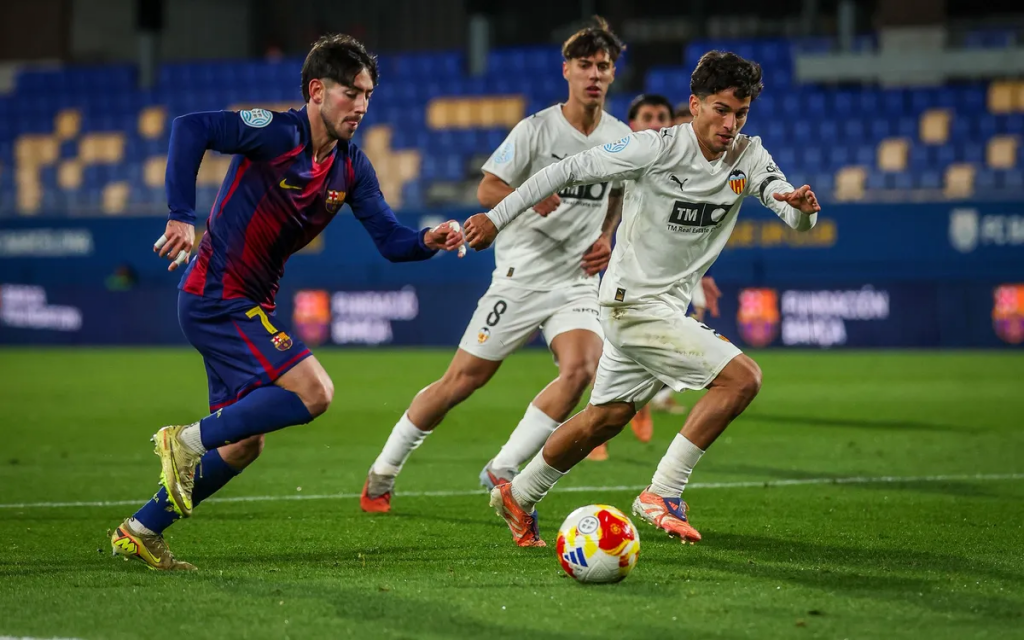 Pero el Valencia Mestalla reaccionó a balón parado. En el 34’, tras un córner servido por Mario, Víctor Jr controló dentro del área y definió cruzado para firmar el 1–1. Cuando el duelo parecía irse igualado al descanso, el Barça Atlètic volvió a golpear. En el 43’, una presión alta permitió a Shane Kluivert recuperar el balón y asistir a Guillermo Fernández, que empujó a placer el 2–1. Ventaja merecida y buenas sensaciones al descanso.
