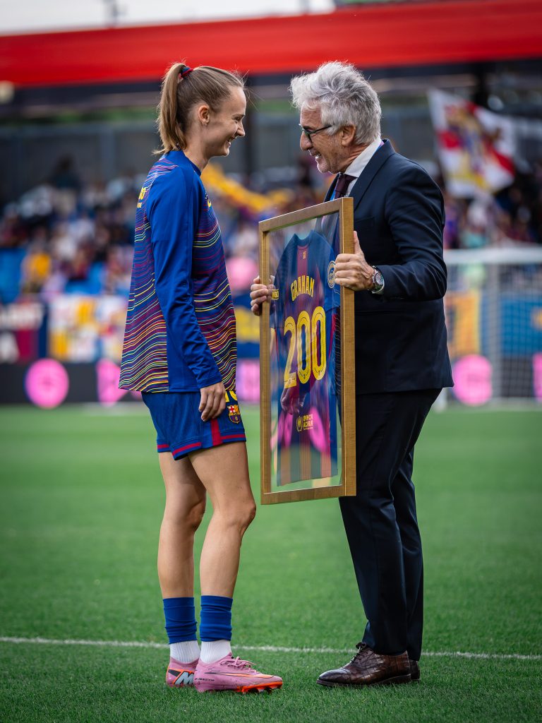 En los instantes previos al pitido inicial, el club rindió homenaje a Caroline Graham Hansen por sus 200 partidos como culé. Además, se guardó un minuto de silencio en memoria de Sandra Peña, víctima de acoso escolar.
