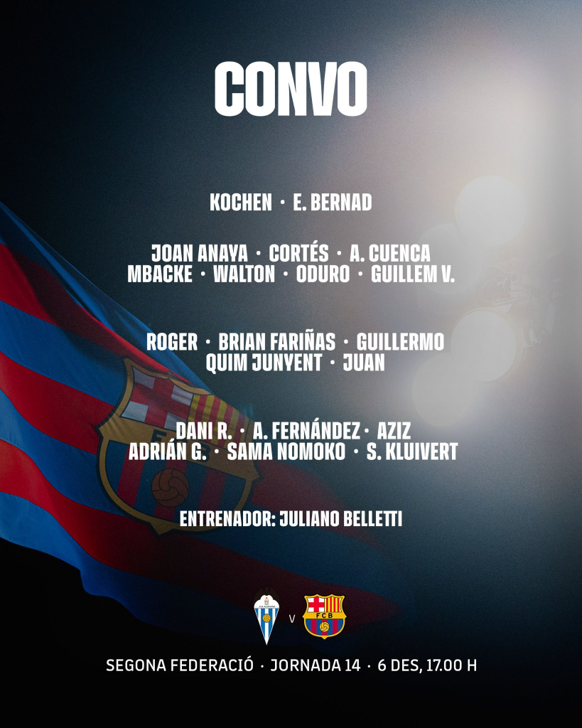 El Barça Atlètic afronta una de las salidas más complejas de la temporada. El filial azulgrana visita un escenario histórico y siempre exigente como El Collao, donde el CD Alcoyano se hace fuerte semana tras semana. Los de Juliano Belletti llegan a la jornada 14 a solo un punto del liderato y con la obligación de sumar para no perder la estela de la punta.