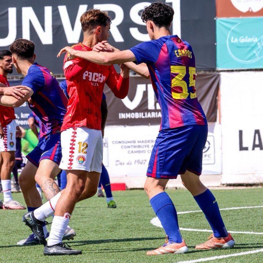 A pesar de las bajas por compromisos con el primer equipo y lesiones, el filial no renunció a su estilo: salida desde atrás, control del balón y generación constante de ocasiones. Jugadores como Guille Fernández, Brian Fariñas, Campos y Tommy Marqués fueron los más activos en ataque, mientras que la defensa pitiusa se mostró ordenada y sólida, complicando la finalización de los culés.
