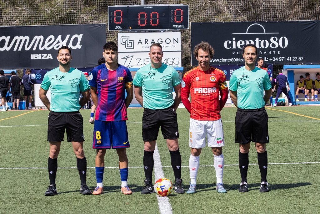 El filial azulgrana mantenía la posesión y generaba superioridad por bandas con Delgado y Tommy Marqués, mientras Campos buscaba remates desde el segundo palo. Conforme avanzaban los minutos, el Ibiza Islas Pitiusas comenzó a reaccionar. Su bloque defensivo se reorganizó y empezó a ganar protagonismo a balón parado, con remates de Pep Vidal y Gilbert que fueron controlados por Bernad.