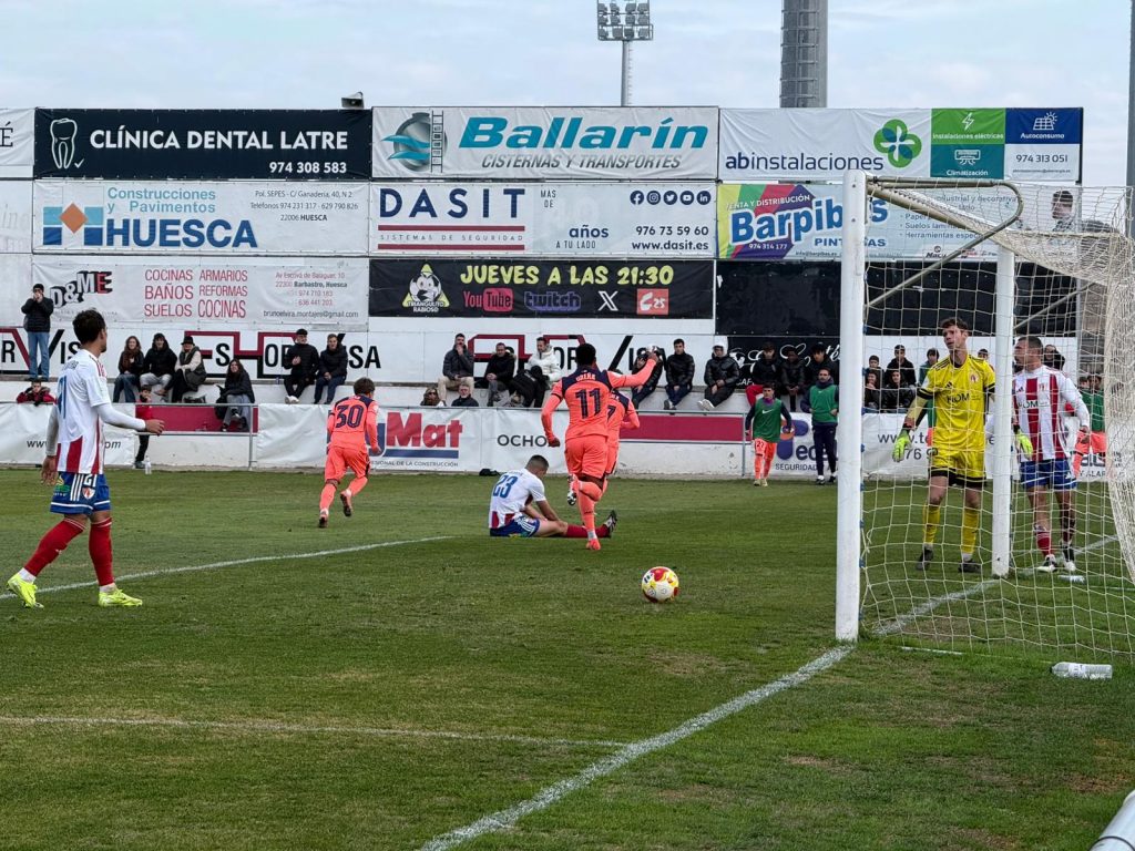 El partido se abrió, el Barbastro dejó huecos y apareció el contexto ideal para Sama Nomoko, que empezó a castigar metros al espacio. Tras un fuera de juego dudoso que le anuló una ocasión clara (min 53’), llegó la acción que cambió todo: Juan Hernández robó con fe en campo rival y asistió a Dani Rodríguez, que necesitó solo cinco minutos en el césped para fusilar a Troya con un derechazo seco (0-1, min 61).