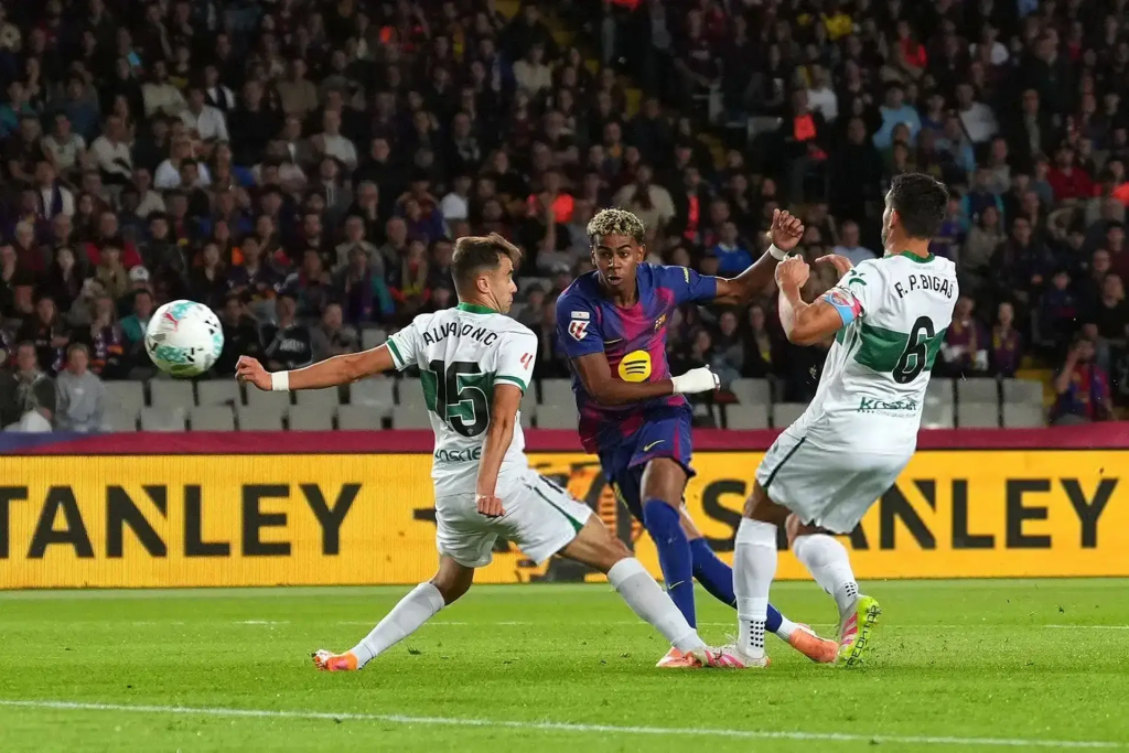 Antes del descanso, Iñaki Peña evitó el tercero azulgrana tras un disparo de Ferran Torres, y Lamine Yamal, en la última acción, rozó el larguero. El primer tiempo se cerró con un Barça superior, pero un Elche valiente y eficaz en sus llegadas.