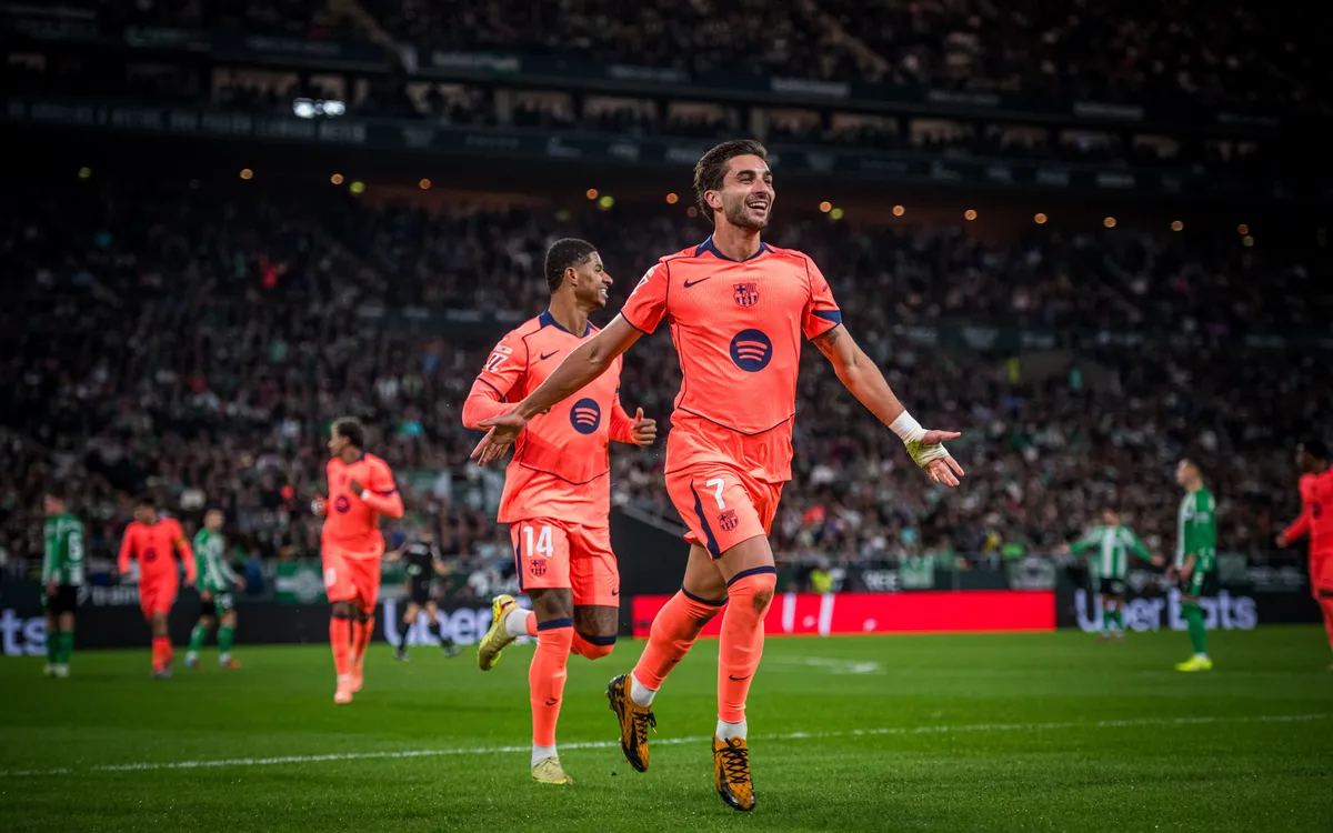 A los cinco minutos, los verdiblancos golpearon primero con una gran arrancada de Abde que acabó en el 1-0 de Antony. Lejos de hundirse, el equipo catalán reaccionó de inmediato: en el min 11’, Koundé ganó línea de fondo y asistió a Ferran, que definió al primer toque para empatar. El francés, señalado en el primer tanto, se reivindicaba con una jugada perfecta.