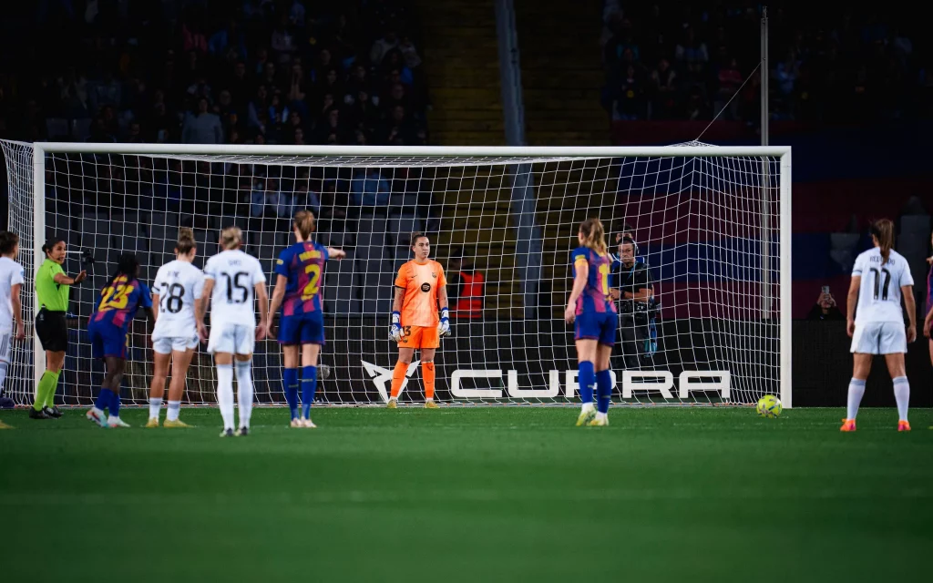 Cata paró un penalti a Caroline Weir en el Clásico de esta temporada