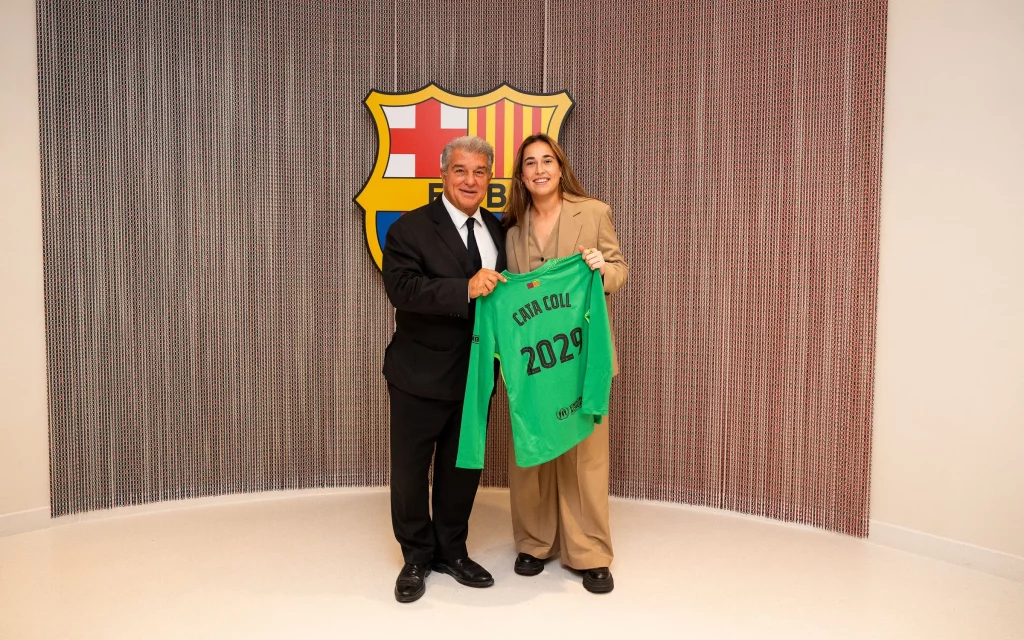 En octubre, Cata Coll amplió su contrato con el FC Barcelona hasta 2029. “Estoy contenta con esta renovación. Me siento una jugadora más madura y con más experiencia”, afirmó tras la firma junto a Joan Laporta.