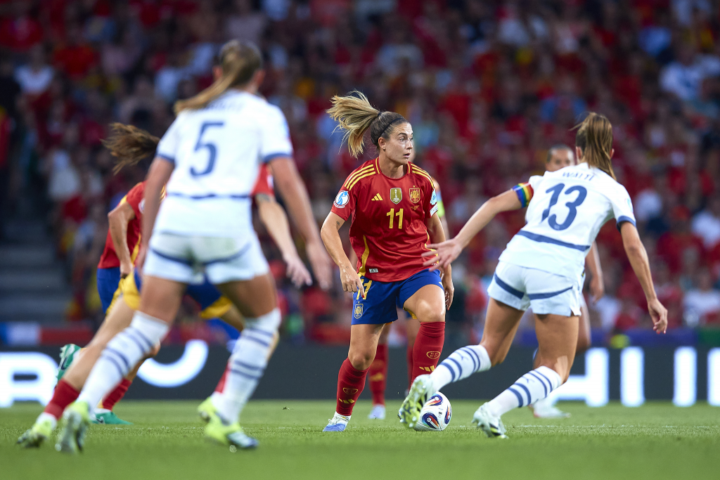 El encuentro comenzó con un claro dominio de España, que desde los primeros minutos monopolizó la posesión del balón y buscó generar peligro por las bandas. Vicky López y Clàudia Pina fueron las principales vías de ataque del conjunto dirigido por Sonia Bermúdez, obligando a la defensa de Islandia a replegarse muy cerca de su propia área.