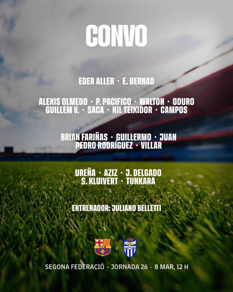 BAJAS DEL BARÇA ATLÉTIC PARA LA JORNADA 26