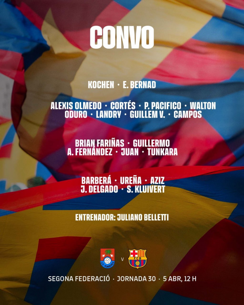 CONVOCATORIA DEL BARÇA ATLÈTIC (JORNADA 30)