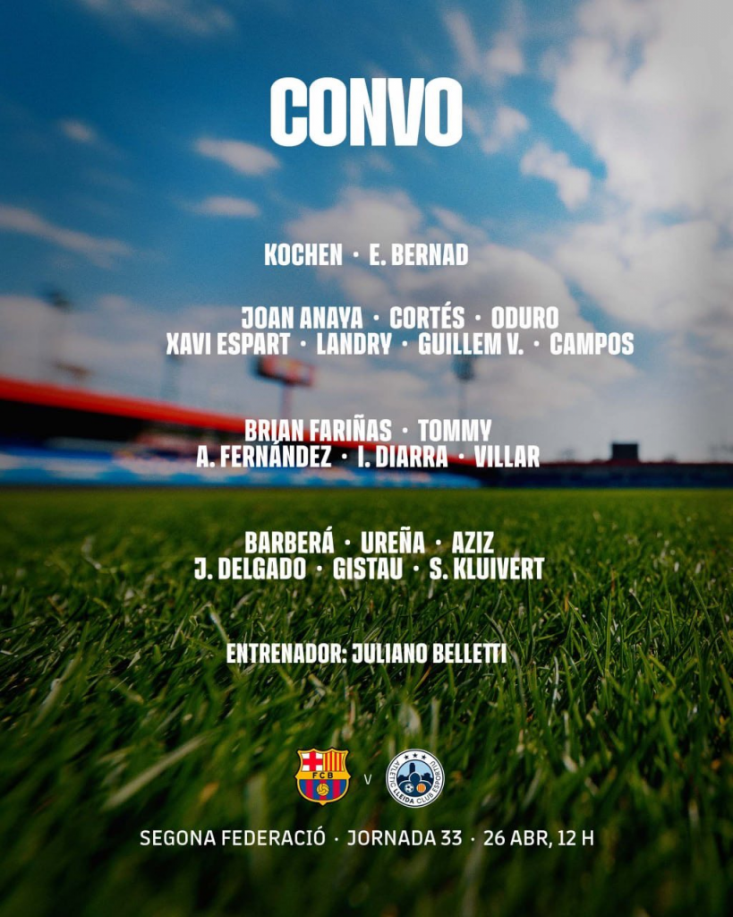El filial azulgrana, sexto clasificado con 49 puntos, está empatado con el Reus FC Reddis, equipo que actualmente marca la zona de playoff. Enfrente estará un Atlètic Lleida sin presión clasificatoria, pero con capacidad para incomodar, especialmente en transiciones y balón parado.
