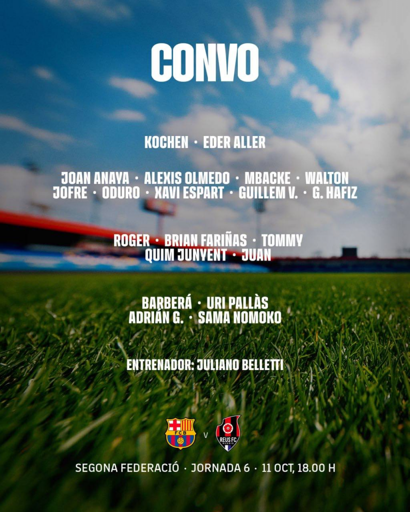 XI Barça Atlètic: Kochen, Xavi Espart, Alexis Olmedo, Mbacke, Jofe Torrents, Tommy, Brian Fariñas, Juan, Roger, Sama Nomoko, Barberá