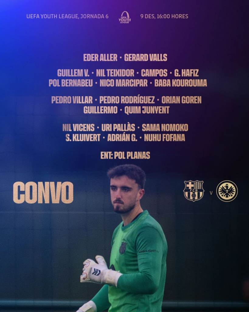 El Juvenil A afronta un duelo clave para volver a la senda de la victoria. Tras una derrota y un empate, los de Pol Planas buscan reencontrarse con su mejor versión europea y situarse entre los cinco primeros del grupo. Enfrente estará el Eintracht Frankfurt Sub- 19, un rival peligroso, en buena dinámica y capaz de competir en escenarios de máxima exigencia.