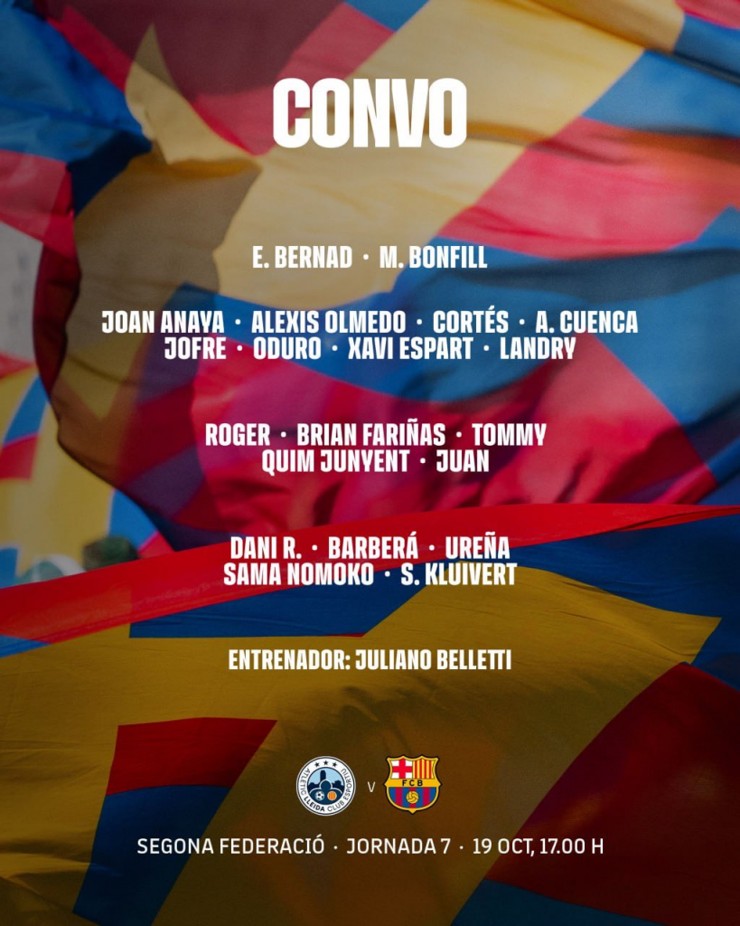El filial azulgrana llega con refuerzos importantes tras el parón internacional, recuperando efectivos clave y con un Víctor Barberà decidido a ampliar su cuenta goleadora. Belletti insiste en que el equipo debe seguir “jugando bien para poder ganar”, consciente de que la regularidad es el gran desafío de la temporada.