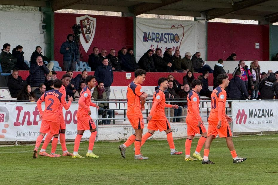 El Barça Atlètic sufre, golpea tarde y firma una victoria de carácter en Barbastro (0-2)